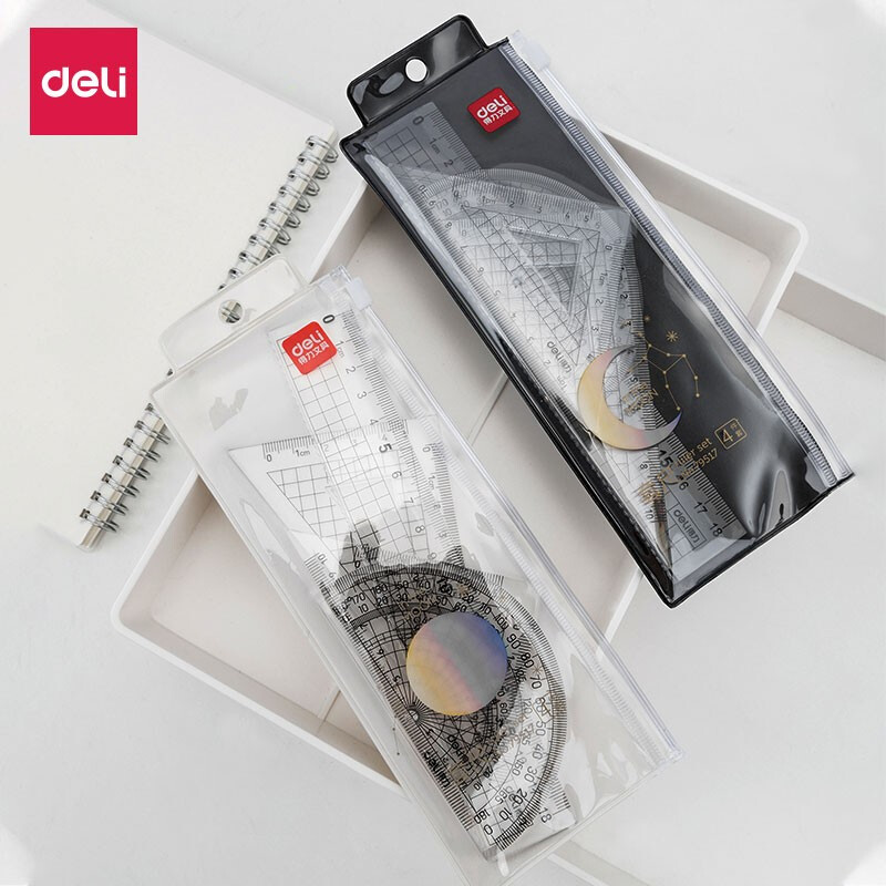 得力 79517 尺子套裝 217*81mm 直尺 三角尺 三角尺 量角器 計價單位:套